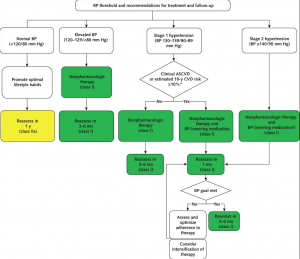 Description: In November 2017, the American College of Cardiology (ACC) and the American Heart Association (AHA) released a clinical practice guideline for the prevention, detection, evaluation, and treatment of high blood pressure (BP) in adults. This article summarizes the major recommendations.
