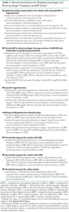 Recommendations: This article summarizes key recommendations in the following areas: BP classification, BP measurement, screening for secondary hypertension, nonpharmacologic therapy, BP thresholds and cardiac risk estimation to guide drug treatment, treatment goals (general and for patients with diabetes mellitus, chronic kidney disease, and advanced age), choice of initial drug therapy, resistant hypertension, and strategies to improve hypertension control.